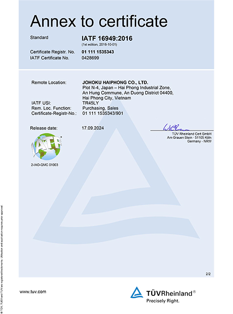 所在地 | 本社・ハイフォン工場 Plot N-4,Japan-Hai Phong IZ, Hong An ward, Hai Phong city, Vietnam. TEL:+84-225-374-3003 FAX:+84-225-374-3004 |